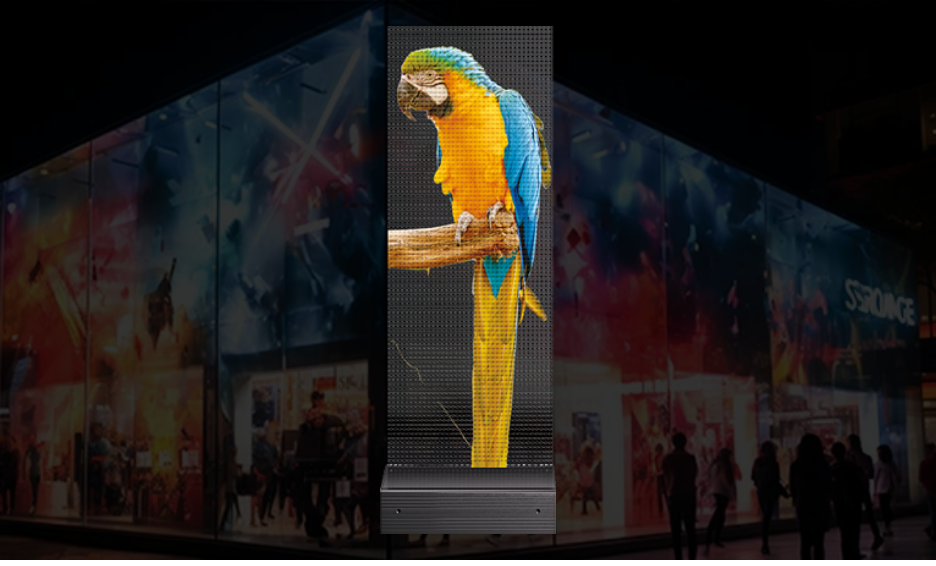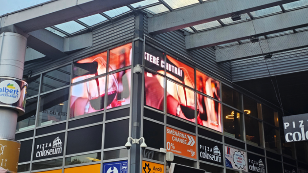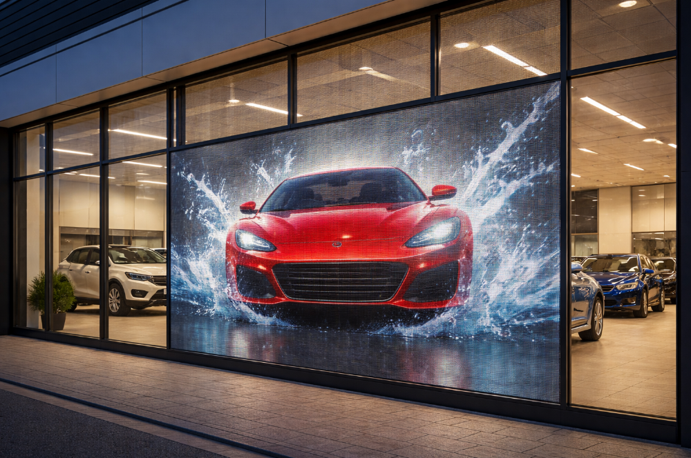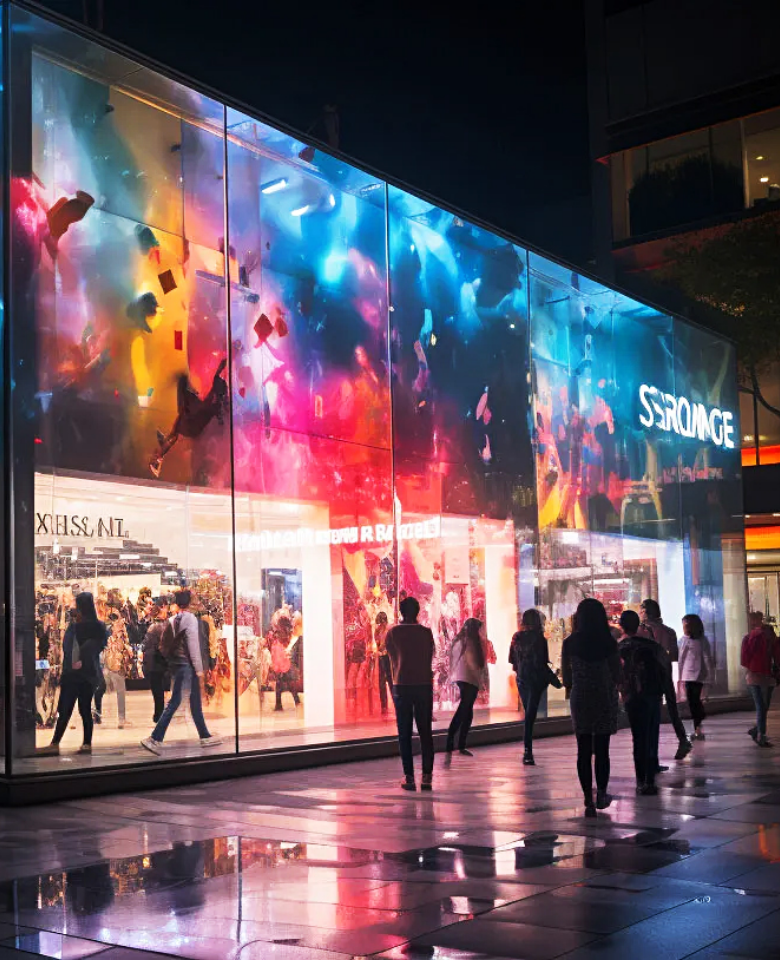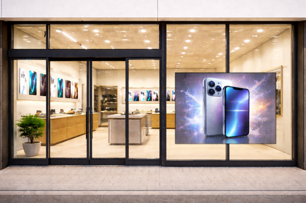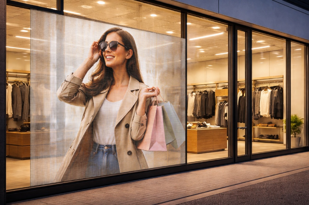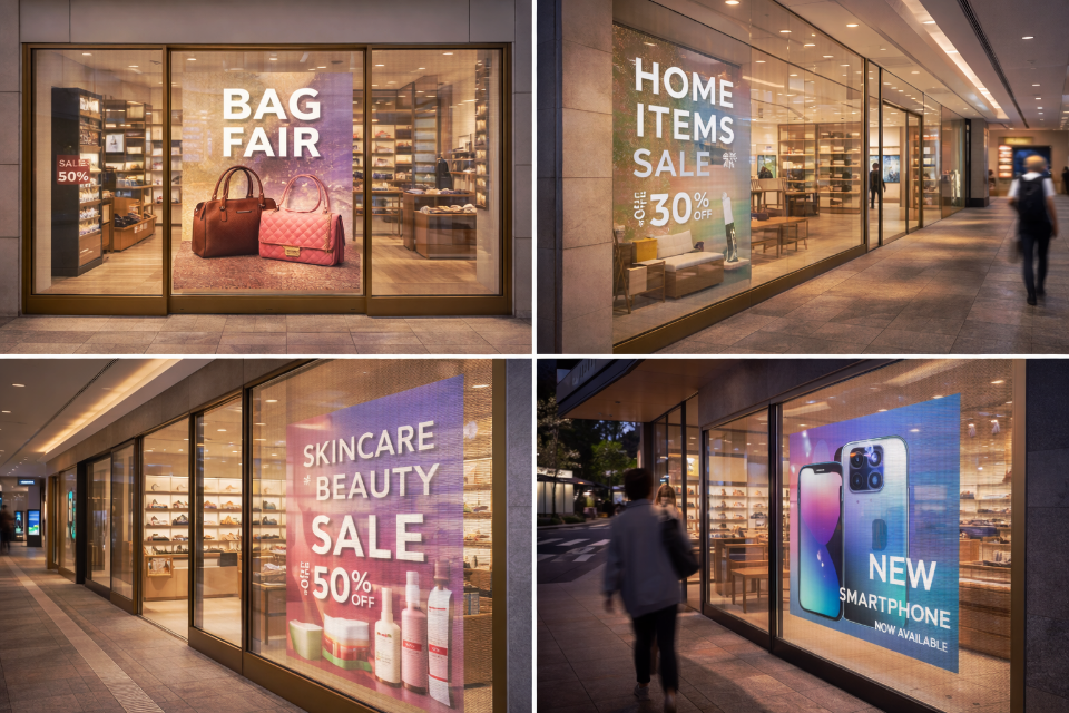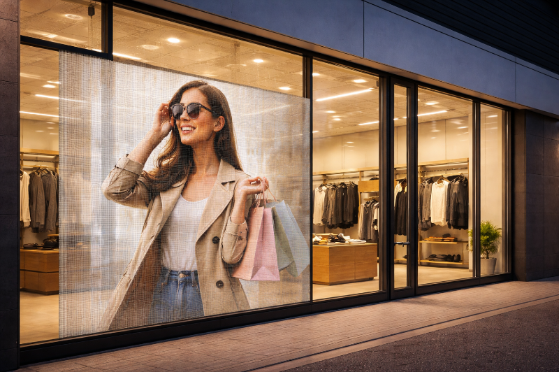 透明メッシュ型LEDビジョンが、ガラス面を“リテールメディア”に。