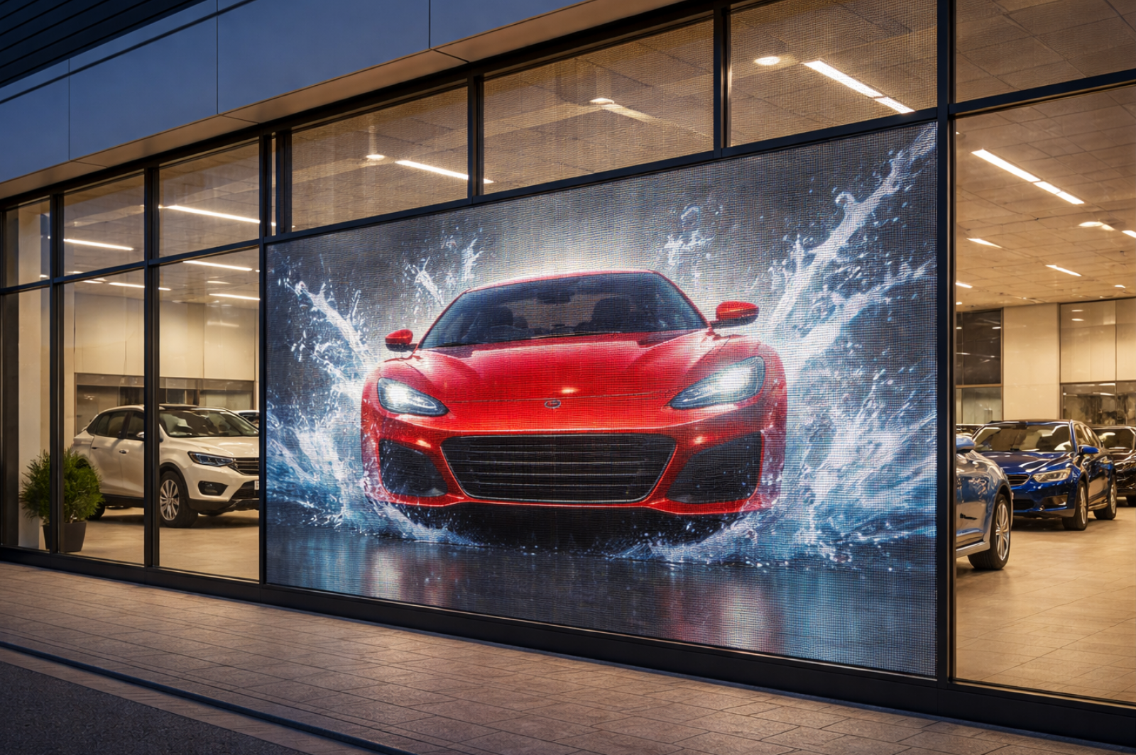 新車発表、特別仕様車、セール告知に最適。ガラス面が明るくなり、夜の視認性が段違い。
