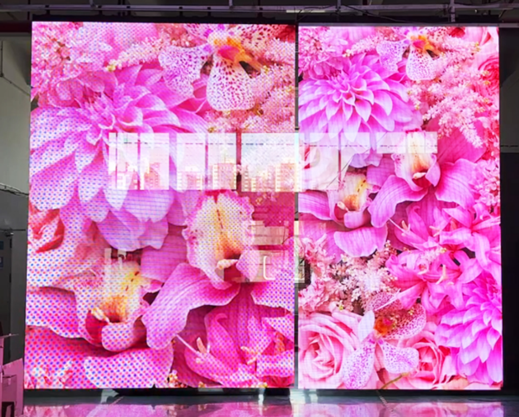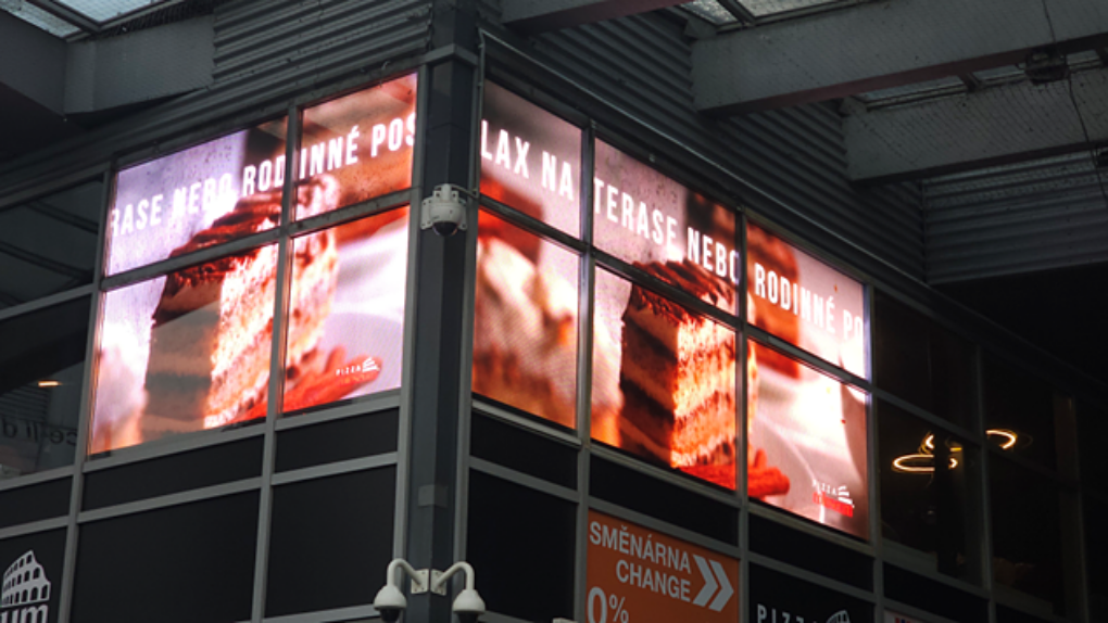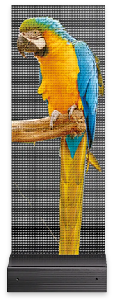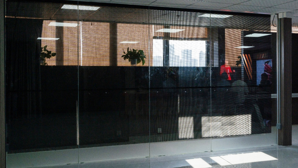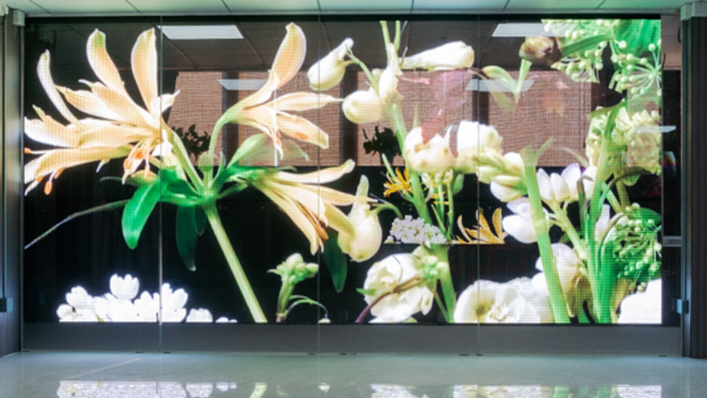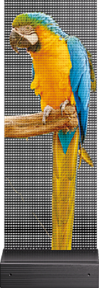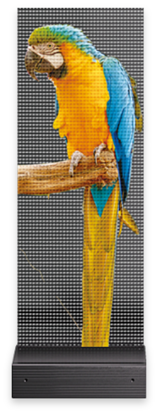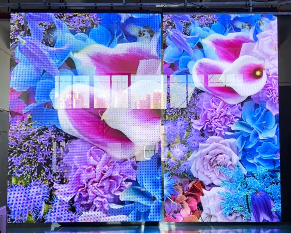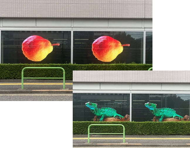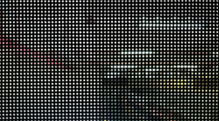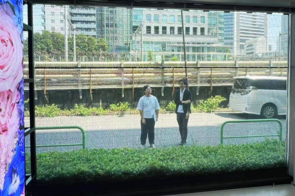 ガラスの世界観を壊さない網戸のようなメッシュ型のスタイリッシュなLEDビジョン