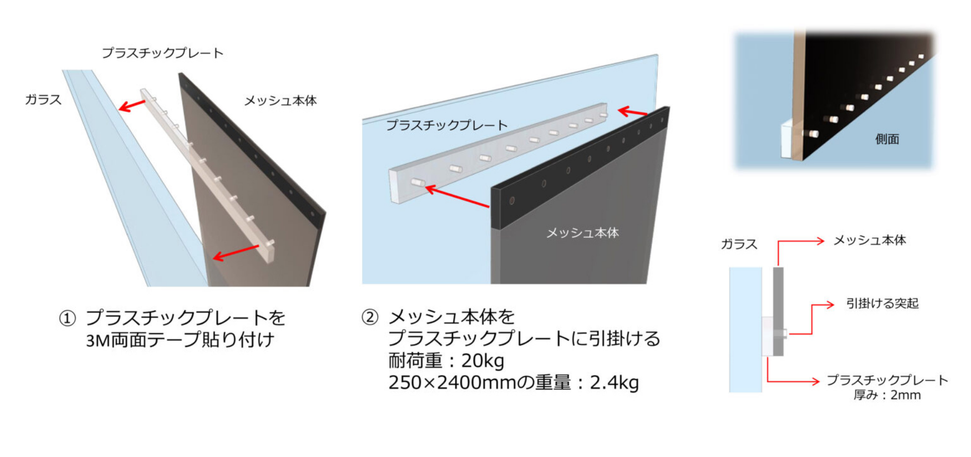 ガラス面に貼るまたは吊り下げるだけの軽量パネルのため、容易に設置でき、多様な窓面に対応できます。