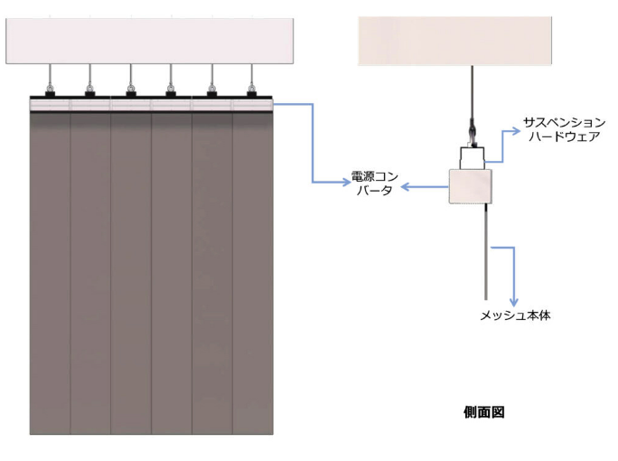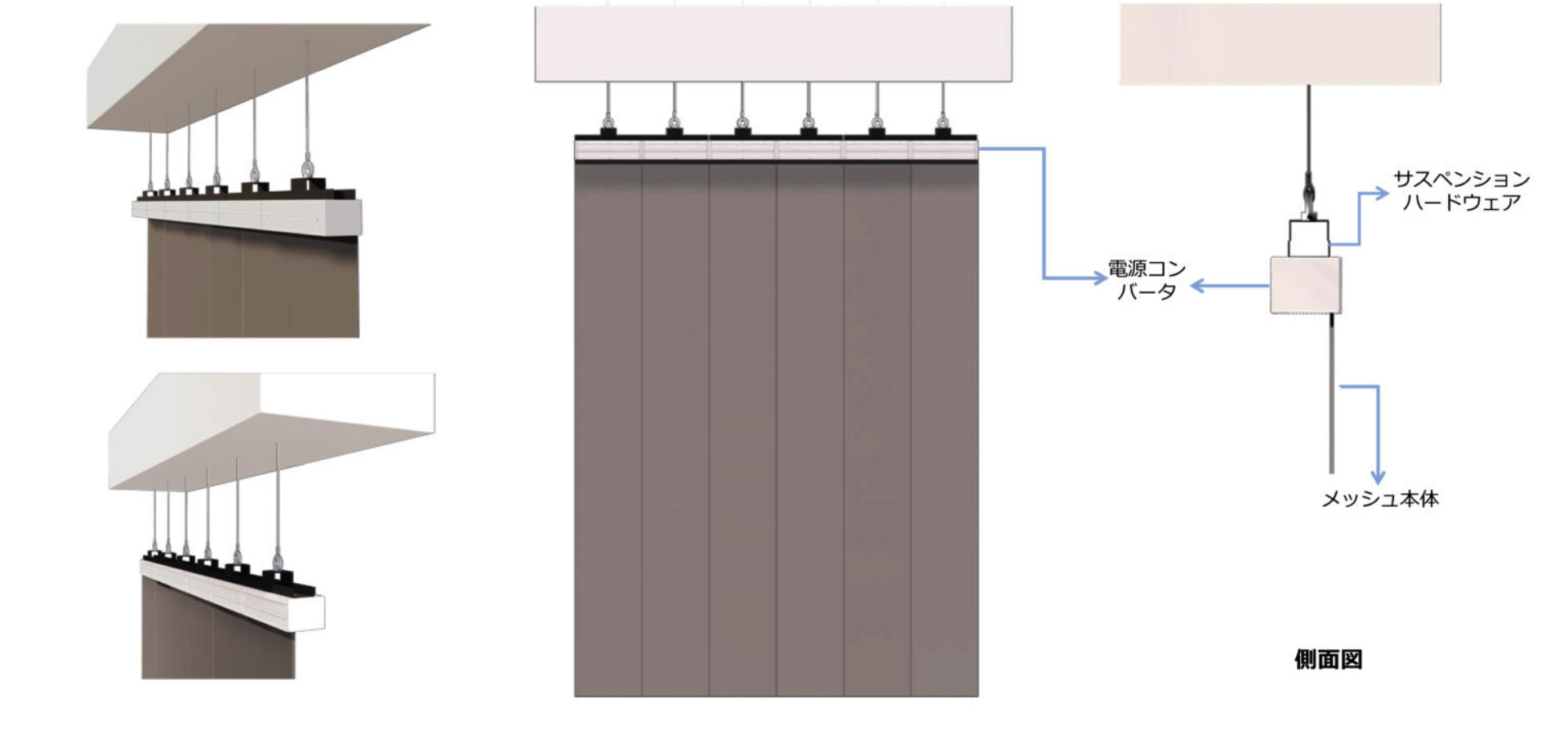 上下に電源BOXを取り付けることで最大9mのシームレススクリーンの設置が可能となり、大型スクリーンをガラス面に作ることが出来ます。