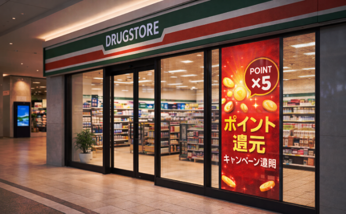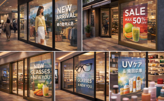 メッシュ型LEDビジョンで売れるウィンドウへ。